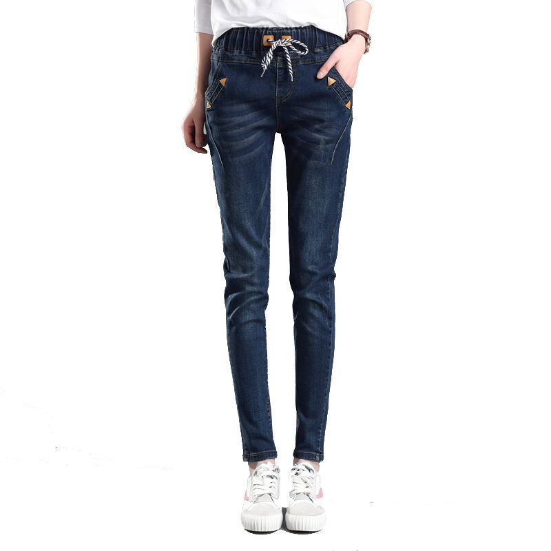 Elastic Waist High Waist Jeans Women's Spring and Autumn Korean Style Skinny Pants Loose Slimming Pants 2021 New Harlan Trousers